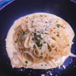 昔、美しが丘店で人気だったカルボナーラを、自家製パンチェッタ🐷で再現しました。