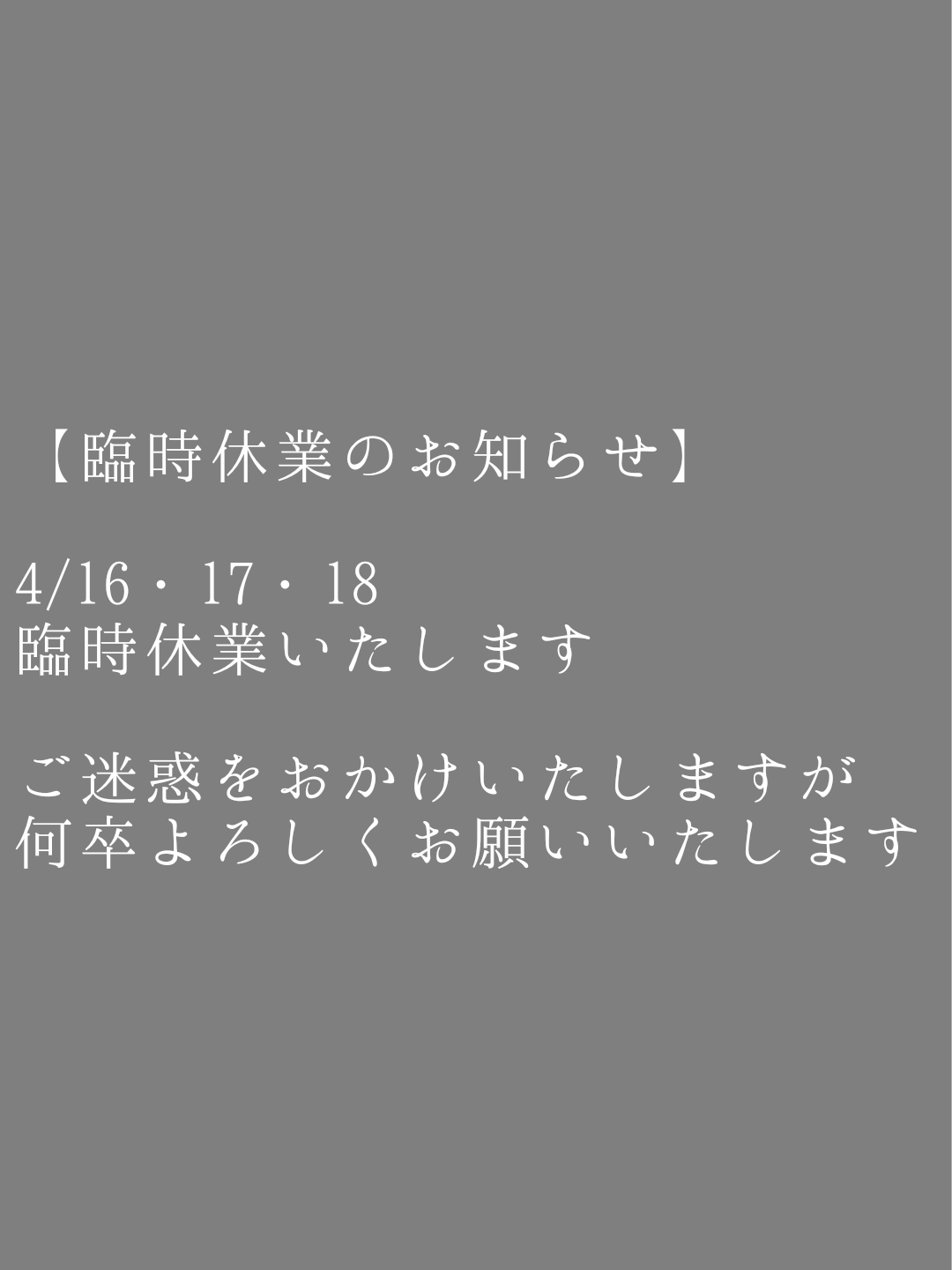 2/7㈯、営業時間変更のお知らせ